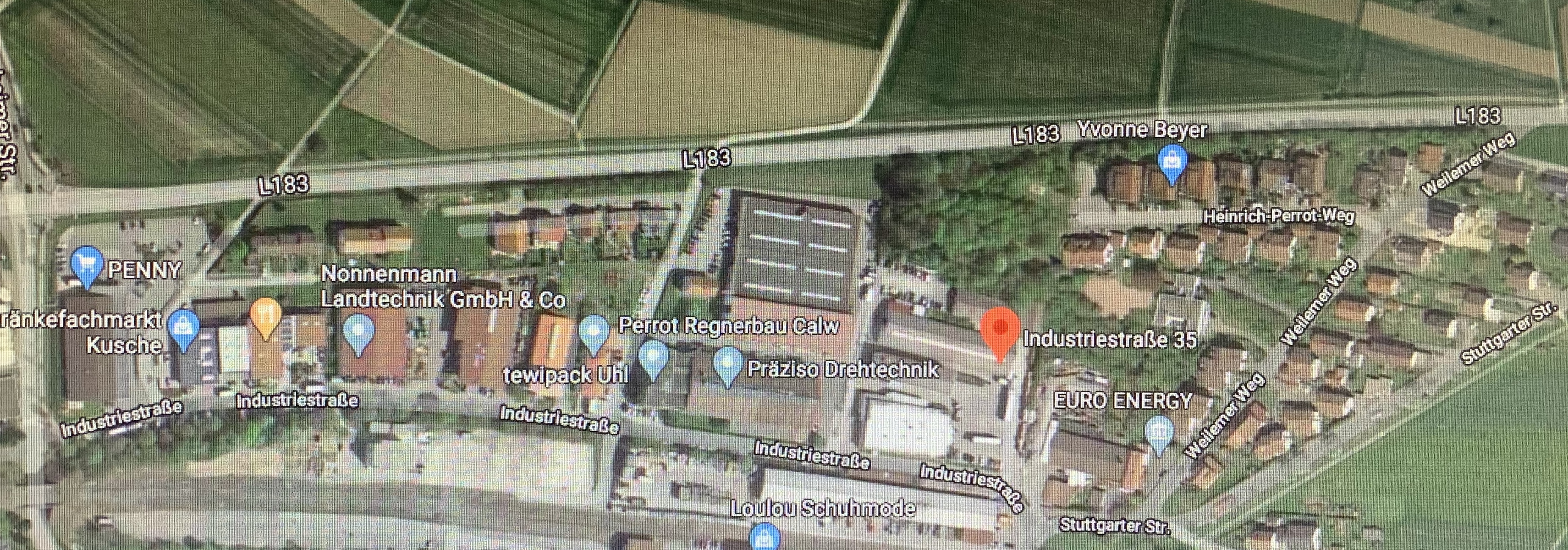 L183 folgen, bis Industriestraße fahren
